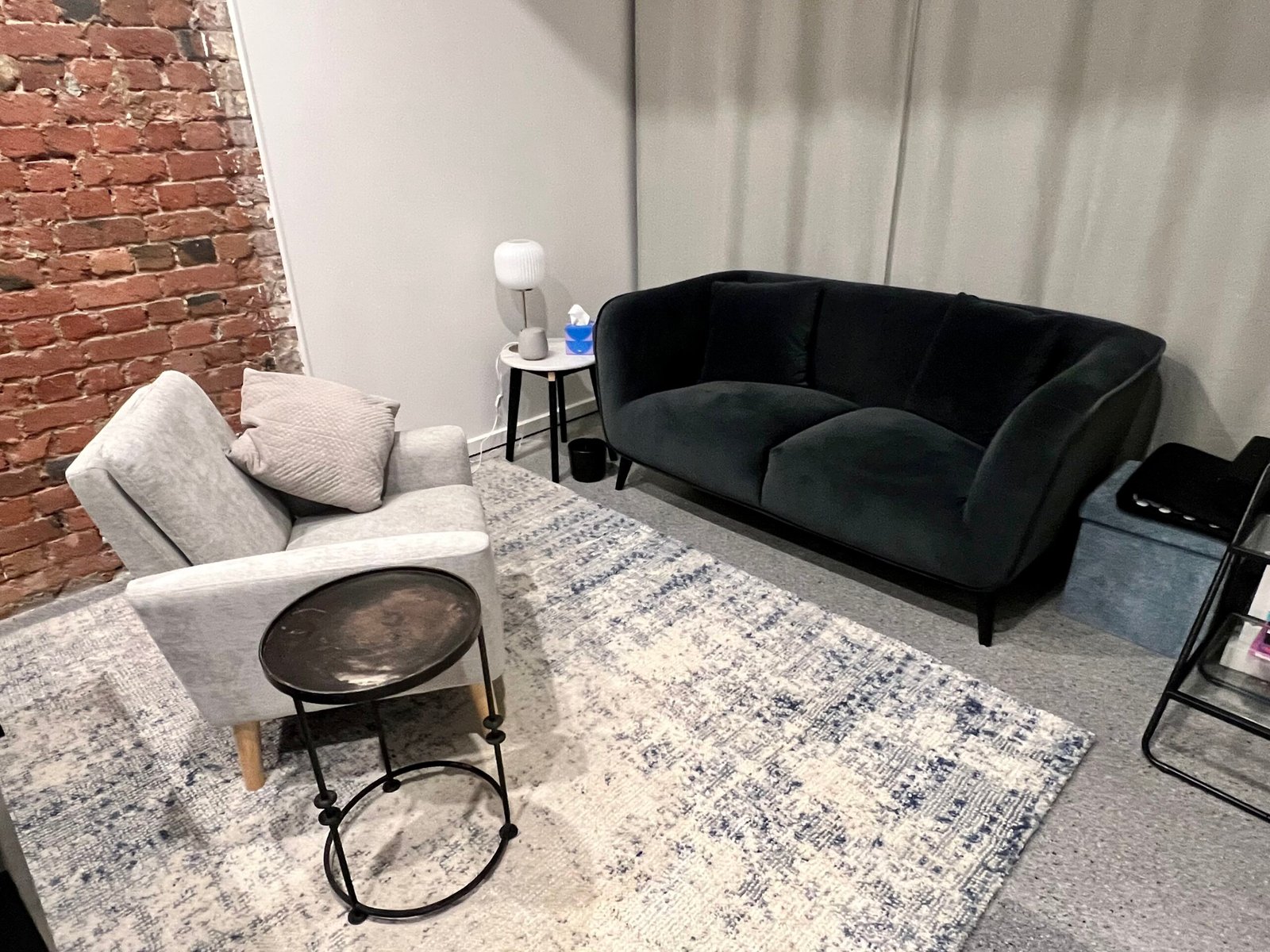 Interior: Our waiting area is large enough to accommodate wheelchairs and contains oversized bench seating for easy access. Therapy Room 1, on the ground floor, has a door measuring 95cm wide and room for a wheelchair and easy seating access inside.
