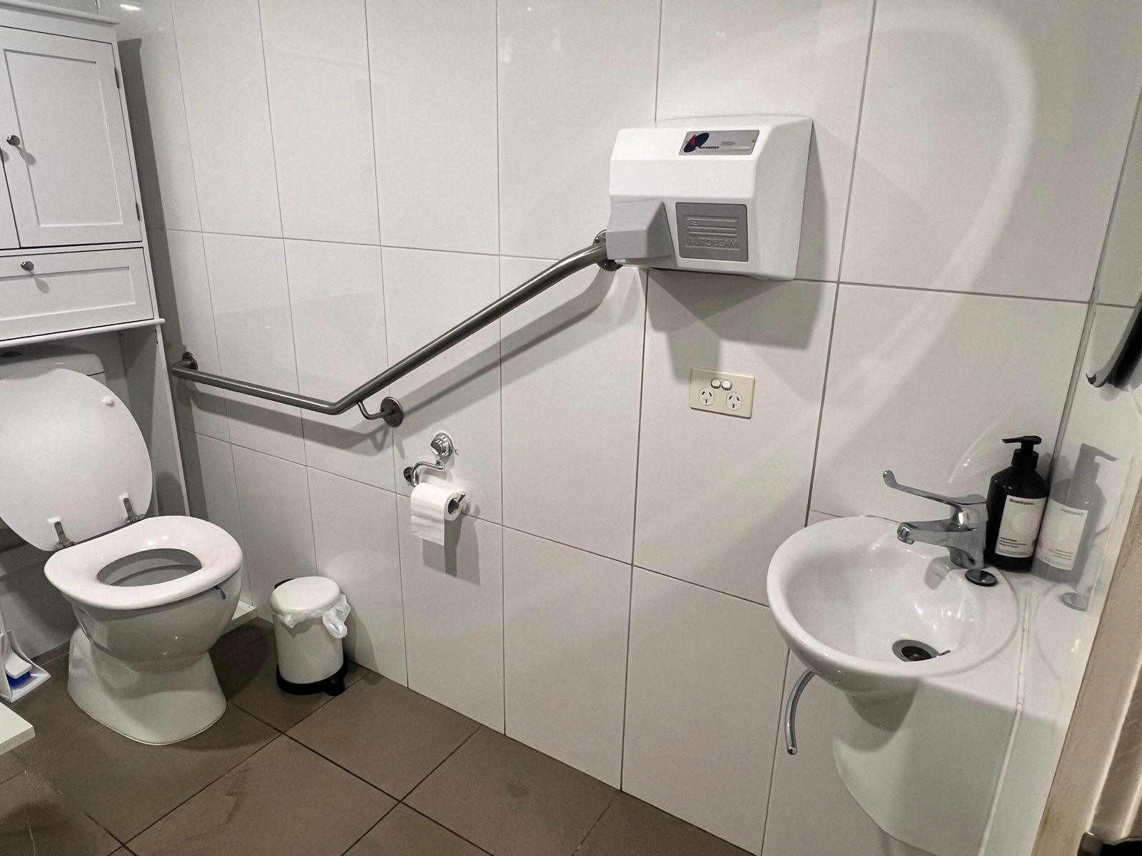 Toilets: Next to Therapy Room 1 is our accessible toilet, equipped with handrails and a door measuring 95cm in width.