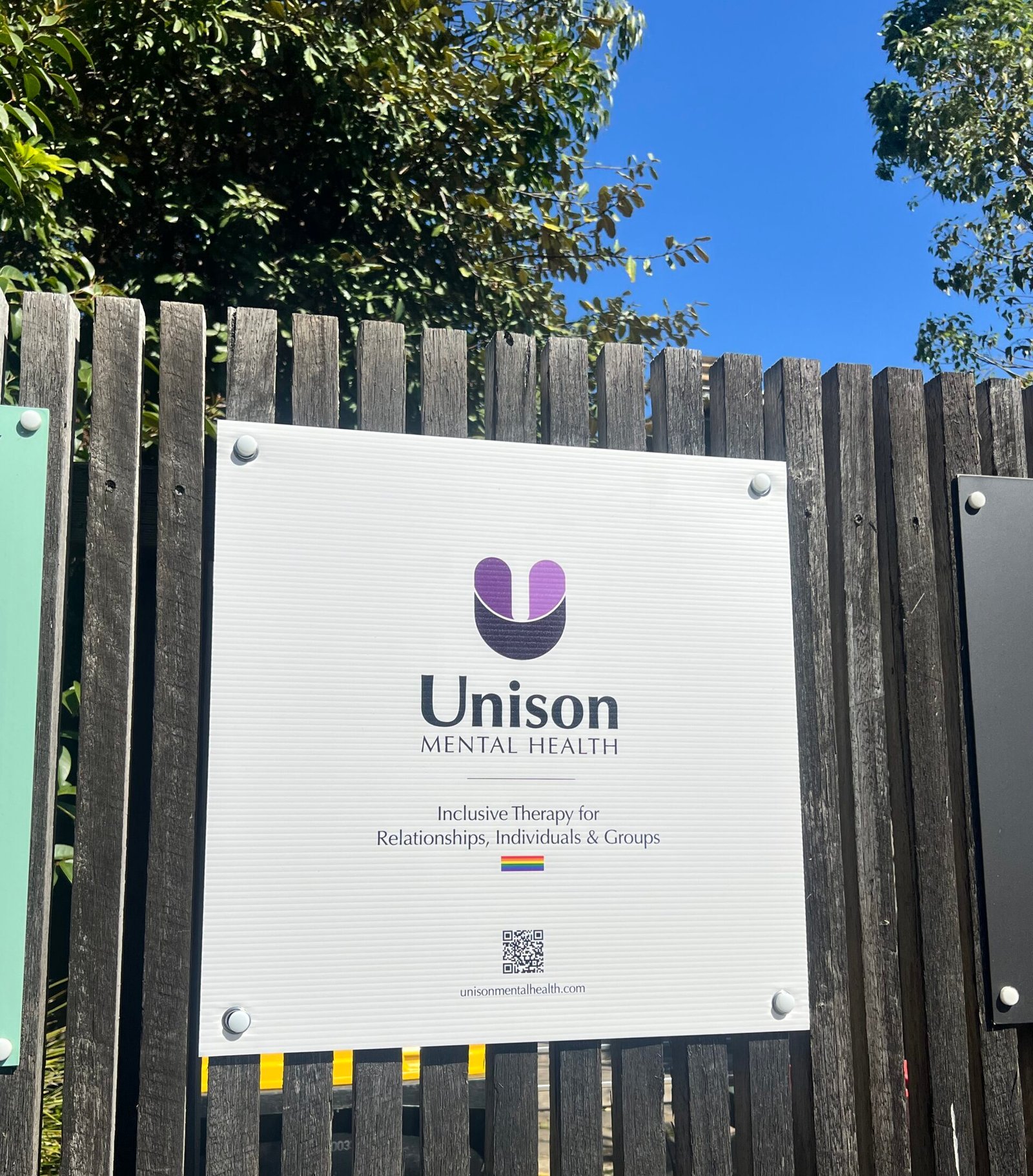 • In-person sessions Most in-person sessions take place at our lovely office in Windsor. When you arrive, go through the gate with the Unison sign and enter the main building. Our office is the first door on the right with a sign. If the door is closed, head down the hall and relax in our small waiting area until your therapist calls you in.